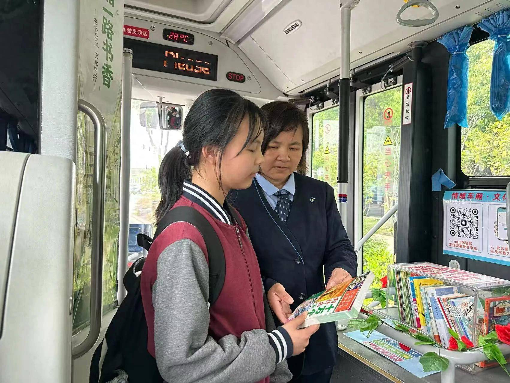 热爱阅读的市民刘女士在290公交车上看到《暂坐》一书,当即按照车厢内张贴的指引,手机扫码进群、填写信息并留下联系方式后,顺利地从共享书柜中取出了这本书。她高兴地表示:“平时工作间隙也会抽空去图书馆,没想到现在公交车上就有了‘便民图书馆’,这对我们上班族来说实在太方便了!”
