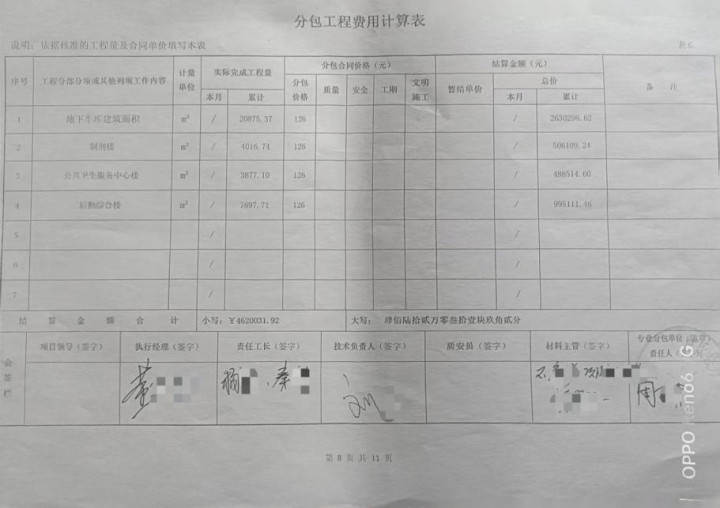 法院审理过程中,争议焦点集中于合同效力、结算依据及工程价款认定。当事人方辩称双方存在口头协议及事实履约行为,并出示了载有合同编号(2017-LSYY-004)及多位项目管理人员签字的阶段性付款审批表、结算汇总表等材料,主张应依126元/平方米结算。林州大东公司则否认签有正式合同,申请对案涉工程人工费进行造价鉴定。