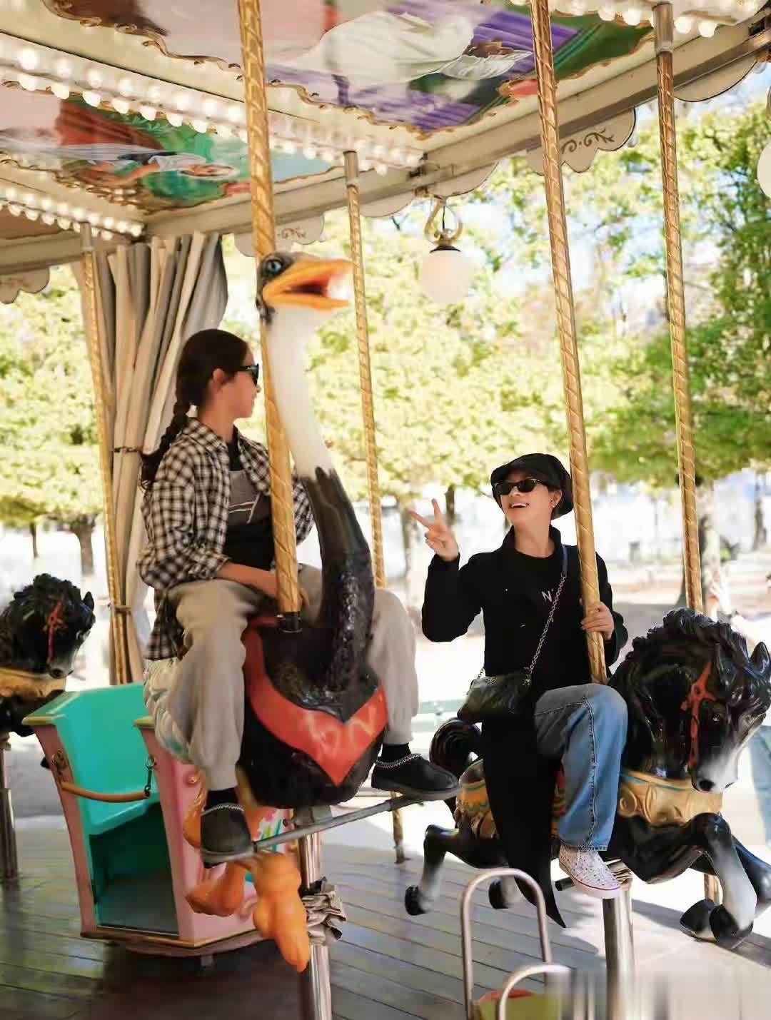 这次巴黎行只有母女俩,邓超忙着宣传《刺杀小说家2》没跟上,儿子等等也没同行。但俩人的小日子照样精彩,孙俪还带着小花去坐了旋转木马,对视一笑的瞬间,画面甜得让人姨母笑。