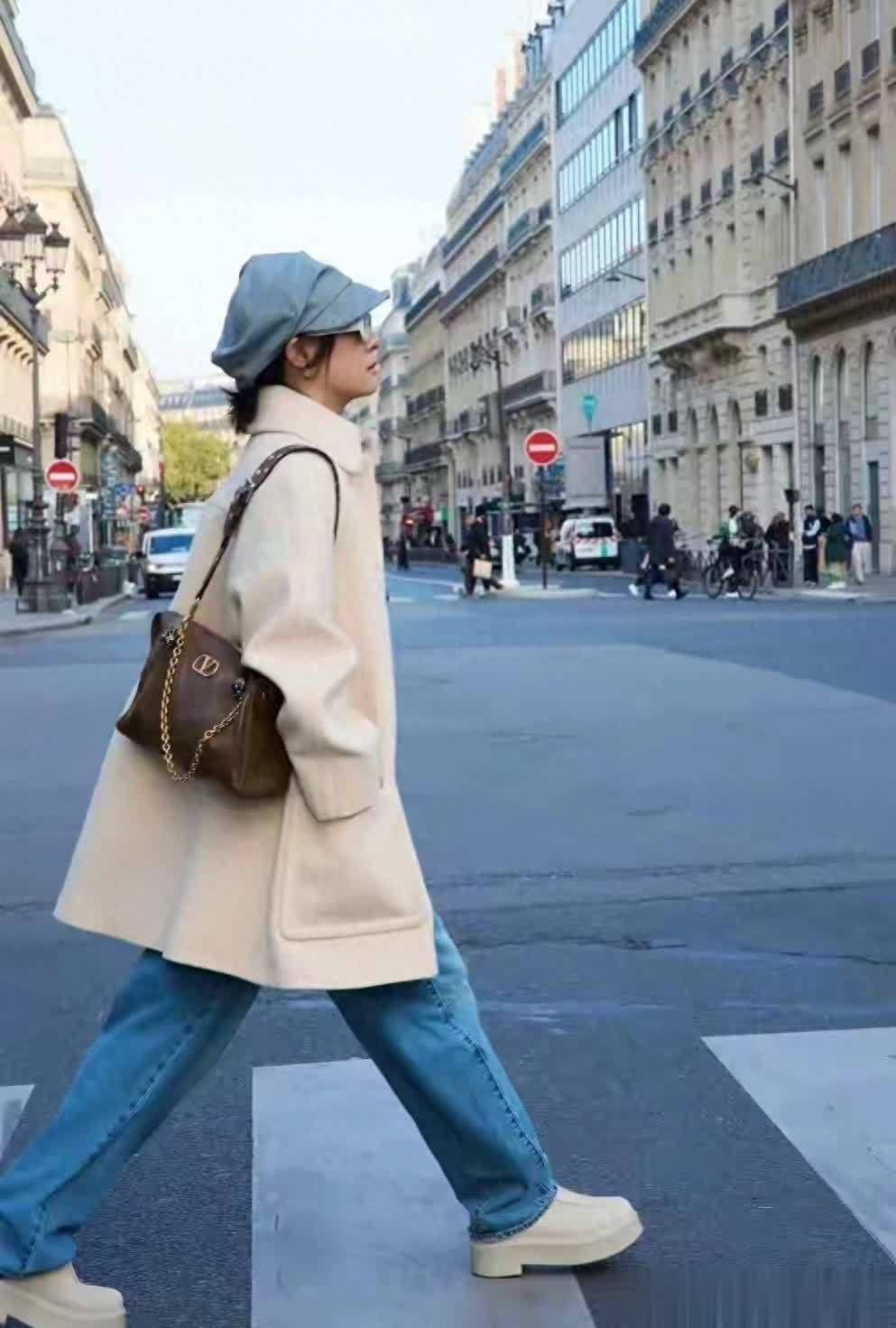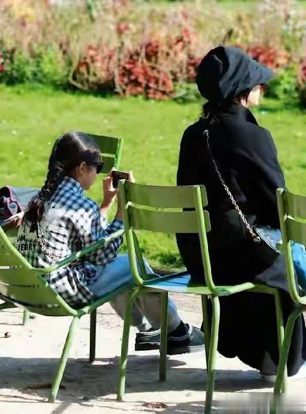 最戳人的是孙俪晒的背影照,母女俩都穿黑色大衣、背黑包、戴黑帽,并排往前走的时候,连手插兜的姿势、走路的体态都像一个模子刻出来的,活脱脱“复制粘贴”,不知道的还以为是孙俪带了个小版自己出门。