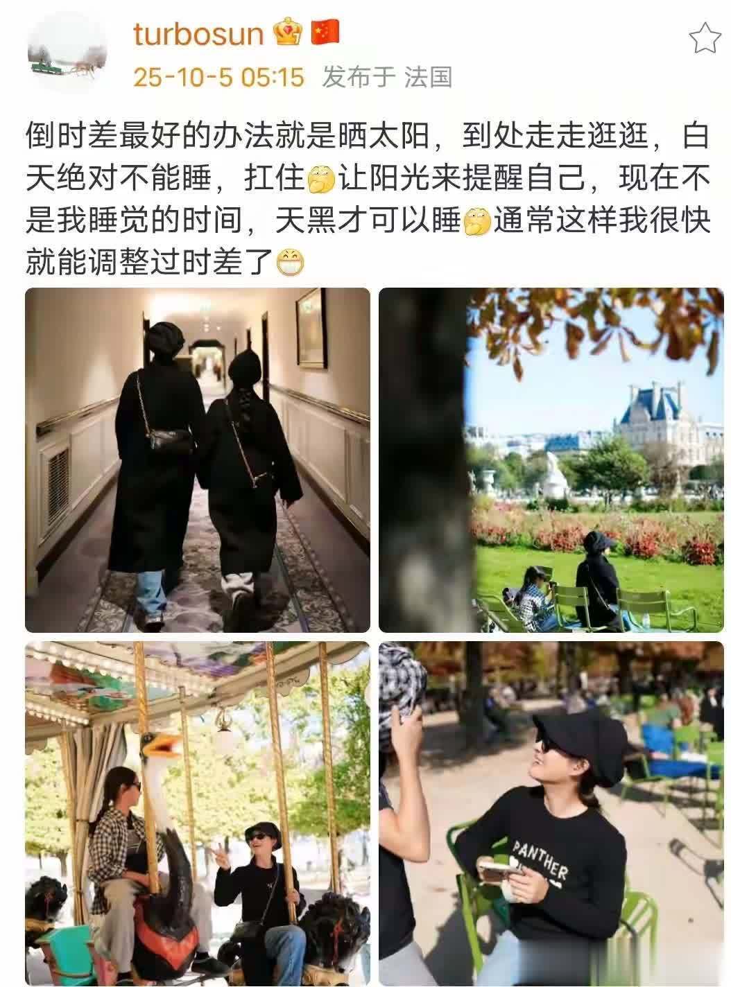 刚到巴黎,母女俩就先跟时差“过了过招”,孙俪分享说倒时差的秘诀就是硬扛,白天再困也不睡觉,还拽着小花到处逛。